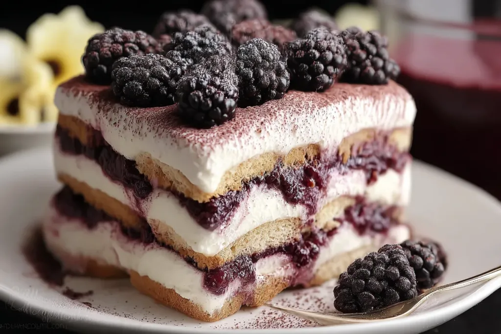 Blackberry Tiramisu is a delightful twist on the traditional Italian dessert, incorporating luscious blackberries for a fruity flavor. This dessert layers coffee-soaked ladyfingers, rich mascarpone cheese, and a berry sauce, creating a harmonious balance of sweetness and tang.