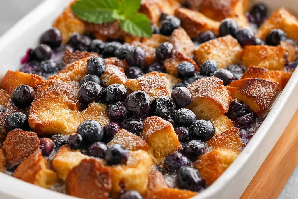 A Blueberry French Toast Casserole is a delightful dish made by combining layers of bread, blueberries, and a creamy custard mixture. It’s baked until golden brown, creating a delicious breakfast or brunch option that’s perfect for hosting friends and family.
