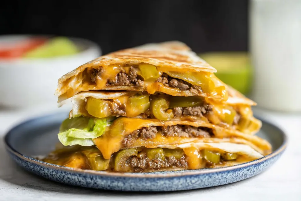 Cheeseburger Quesadillas are a delicious fusion of two favorites: cheeseburgers and quesadillas. This dish combines seasoned ground beef, melting cheese, and your favorite burger toppings, all encased in a crispy tortilla. They make for a flavorful, easy-to-eat meal perfect for any occasion.