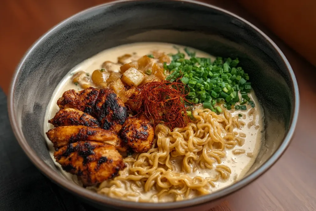 Keywords: Chicken Ramen, Creamy Garlic Sauce, Easy Dinner, Comfort Food, Asian Cuisine