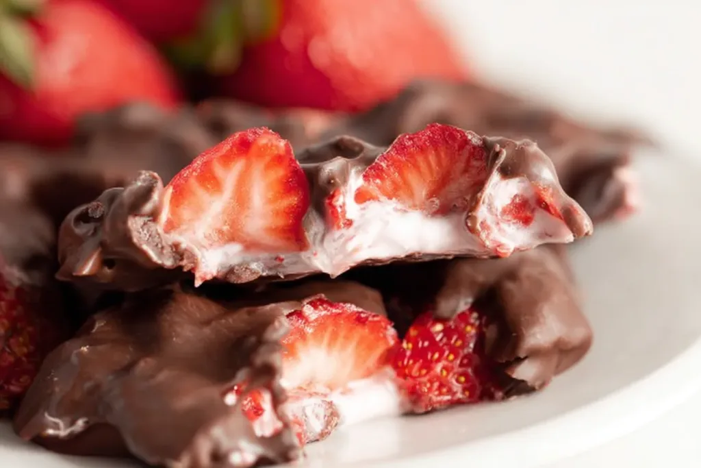 Indulge in these delectable Chocolate Strawberry Yogurt Clusters, a perfect combination of fresh strawberries, creamy yogurt, and rich chocolate for a guilt-free treat.