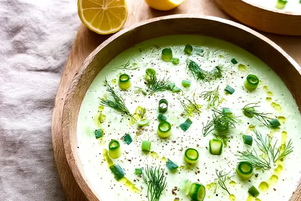This refreshing Cucumber Gazpacho is a perfect chilled soup for hot days, blending cool cucumbers with creamy Greek yogurt and fresh herbs for a deliciously light appetizer.