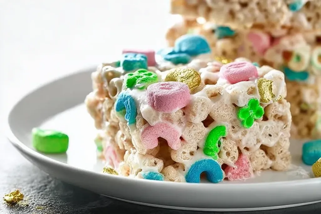 Moreover, the combination of marshmallows and rich butter melds beautifully with the crunchy cereal, creating a texture that will keep you coming back for more. Whether you’re a seasoned baker or a novice in the kitchen, this Lucky Charms Marshmallow Treats Recipe promises to bring joy and smiles to every occasion. So, let’s dive into how you can whip up this magical treat at home!