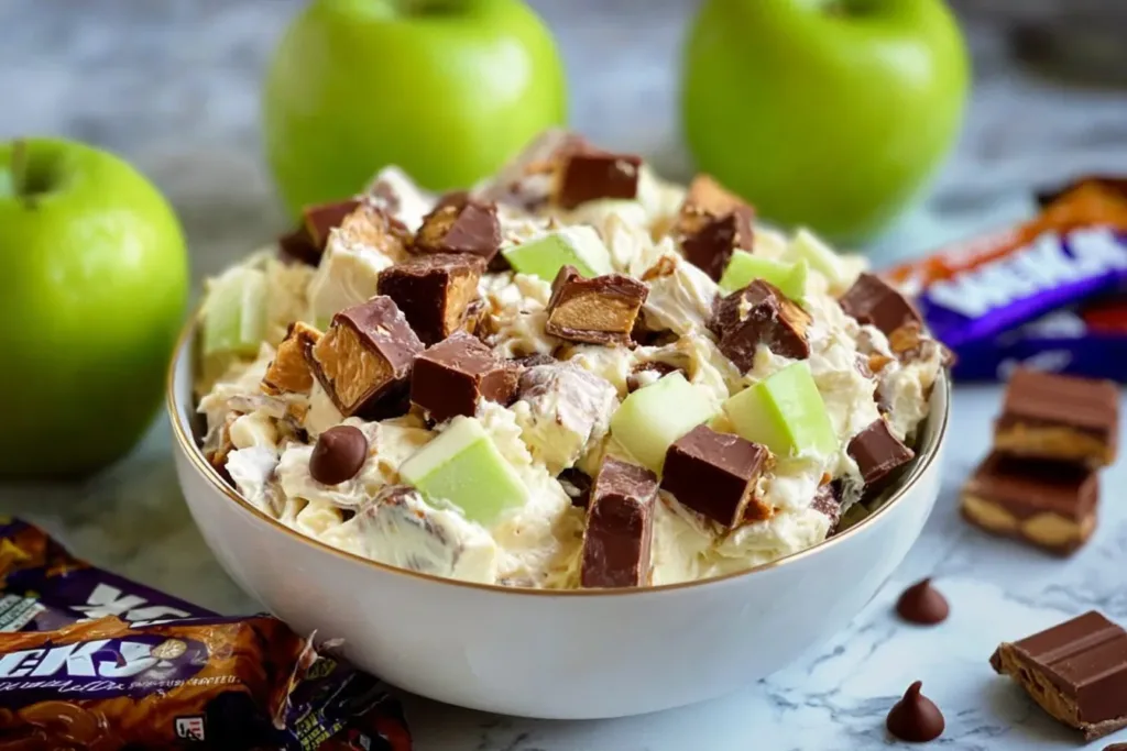Snickers Salad is a fun and indulgent dessert salad that perfectly blends crunchy apples, fluffy cream, and chunks of chocolate caramel candy. This sweet, creamy treat is a guaranteed crowd-pleaser, ideal for potlucks, picnics, and family gatherings. It’s quick to make, deliciously satisfying, and offers the perfect balance of fruity freshness and candy-bar richness.